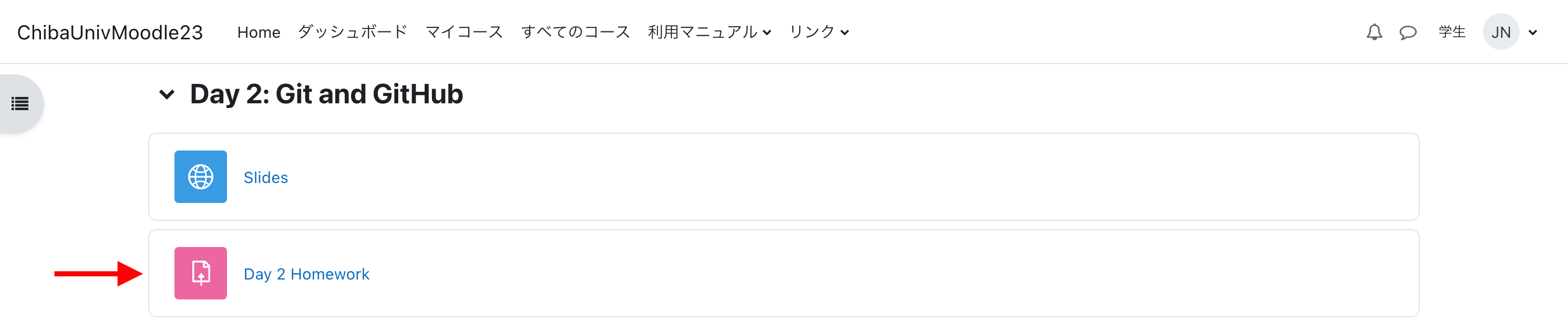 Log into Moodle and navigate to our course page. Under the main “Course” tab, click on “Day 2: Git and GitHub”.