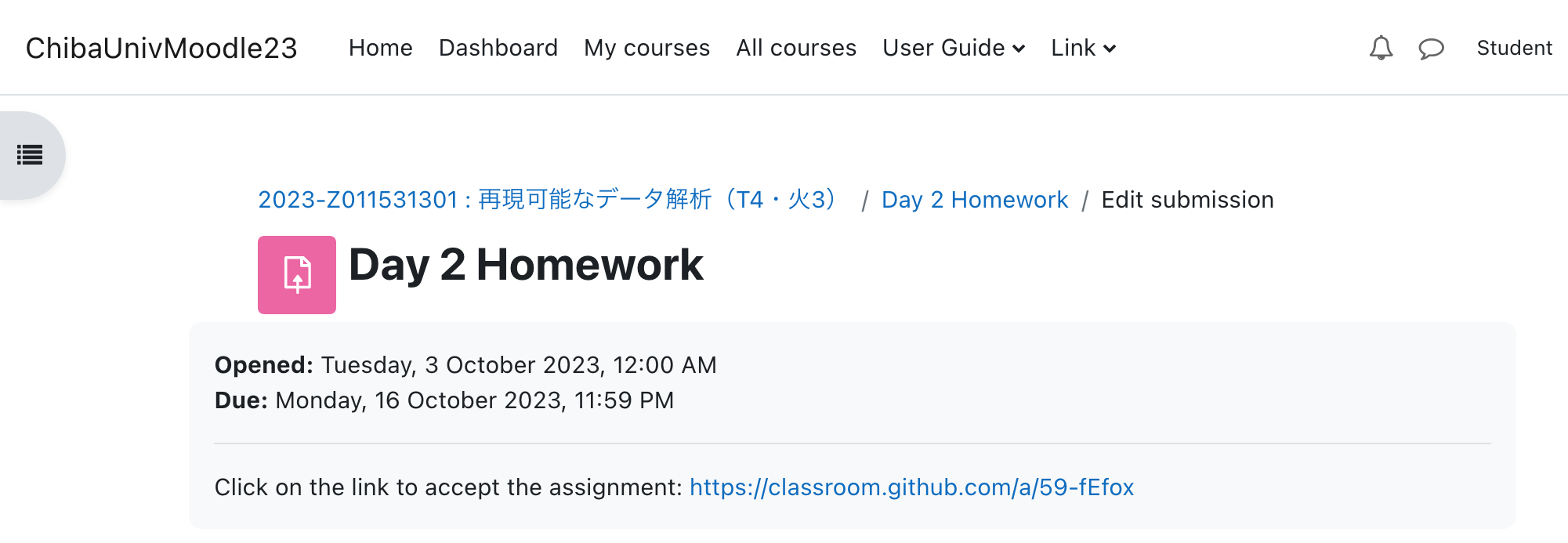 Go to Moodle, click on Day 3 Homework and click on the link to accept the assignment