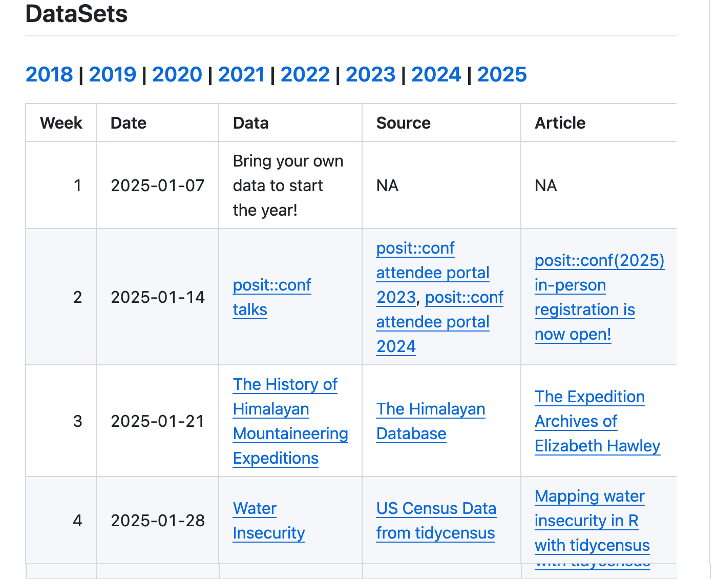 Note that the TidyTuesday webpage shows tidytuesdayR::tt_load("2025-01-21"), but this does the same thing as running library(tidytuesdayR) followed by tt_load("2025-01-21").